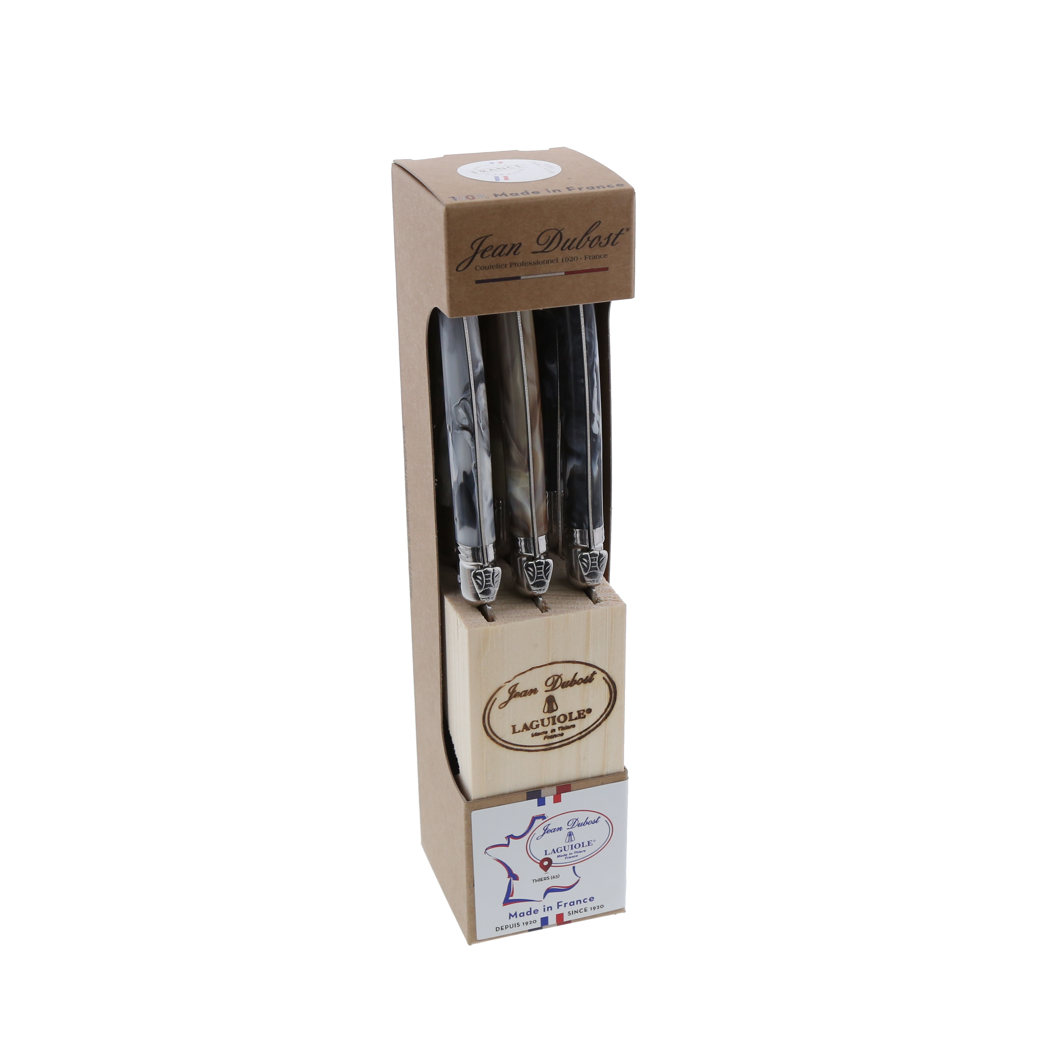 Set de 6 couteaux Jean Dubost Laguiole manches ABS coloris Fusion, présentés en coffret ou bloc bois